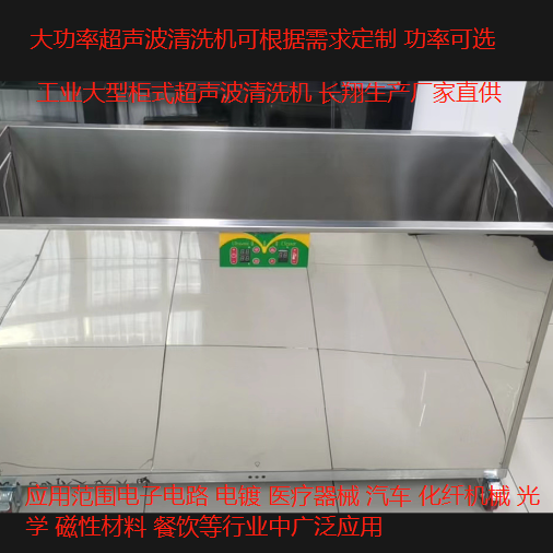 大型超聲波清洗設(shè)備:本機(jī)屬于一款根據(jù)客戶(hù)清洗需求定做的一款非標(biāo)設(shè)備,本設(shè)備長(zhǎng):3.3米,寬:2.4米,高:1.2米,功率:300000W,加熱功率:720000W,振子個(gè)數(shù):500個(gè)。屬于大功率清洗機(jī)適合應(yīng)用于各種工業(yè)。 工作原理:經(jīng)過(guò)科學(xué)實(shí)驗(yàn)證明,對(duì)密封容器中的氣球、減壓到一定程度時(shí),氣球會(huì)自動(dòng)炸裂,超聲波就是利用這種原理讓液體分子自動(dòng)炸裂,利用液體分子、自身溶解力去直接清洗物體、無(wú)孔不入,清洗效果,保證清洗效果的一致性,這就是超聲波清洗的優(yōu)越性。