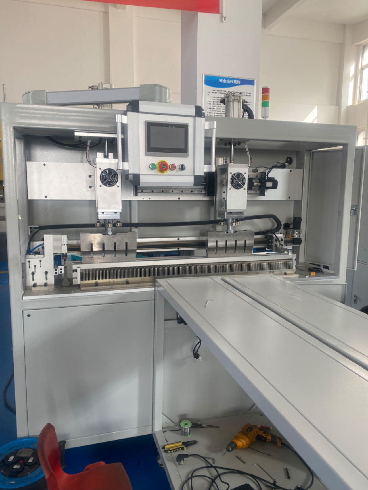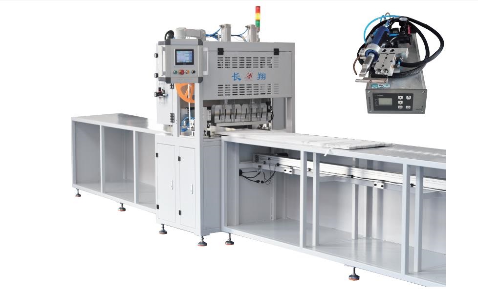 除塵濾芯生產(chǎn)設(shè)備:又稱(chēng)除塵濾芯綁帶焊接機(jī),超聲波焊接機(jī),全自動(dòng)超聲波焊接設(shè)備等,本設(shè)備采用多臺(tái)超聲波焊接系統(tǒng)并聯(lián)使用,采用PLC自動(dòng)化編程配合多工位運(yùn)動(dòng)同時(shí)焊接以及切斷,整機(jī)為工作臺(tái)形式,由雙排超聲波焊接頭、運(yùn)動(dòng)板下模具為一體、前置啟動(dòng)按鈕、急停按鈕、配電箱部分控制屏、氣壓表調(diào)節(jié)閥等幾大版本組成,并配有照明燈、故障提醒等,動(dòng)作方式為上方超聲波焊頭為氣動(dòng)控制,下方運(yùn)動(dòng)型下模為自動(dòng)化運(yùn)動(dòng)。